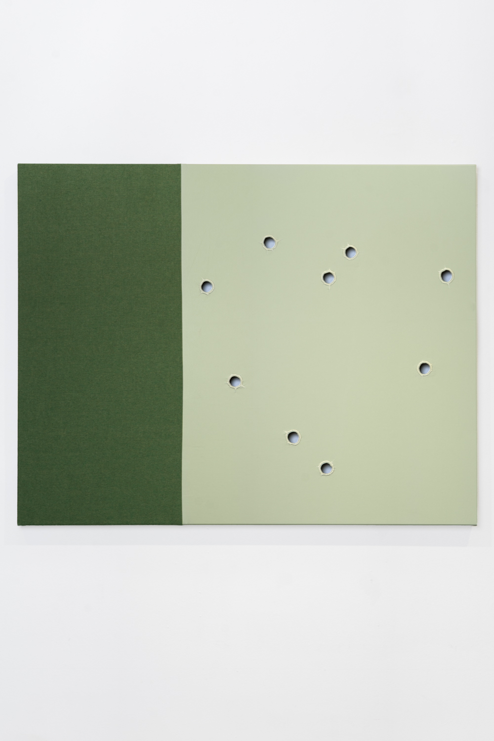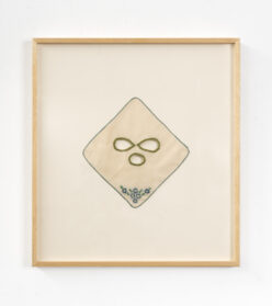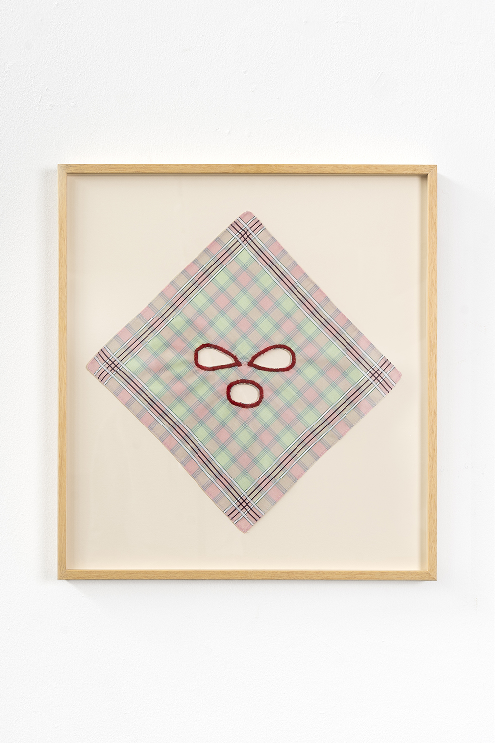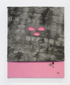 The stretcher frames covered, layered, and spanned with fabric are images in the sense that they are image-carriers wich are dressed by textile. Thus they carry associations with craft and global production and can bear witness to intimacy, closeness, and resistance alike. The picture planes conceive of identities through fragmentation and patchwork as units assembled from fragments. Somewhere between collage and assemblage, they form themselves into tableaux that allow for pragmatic and personal points of reference. Compositionally, the works recall avant-garde positions in painting, humorously updated — as if a Color Field painter, stripped of raw canvas and pigment, had been forced to source their supports from a second-hand clothing bin.